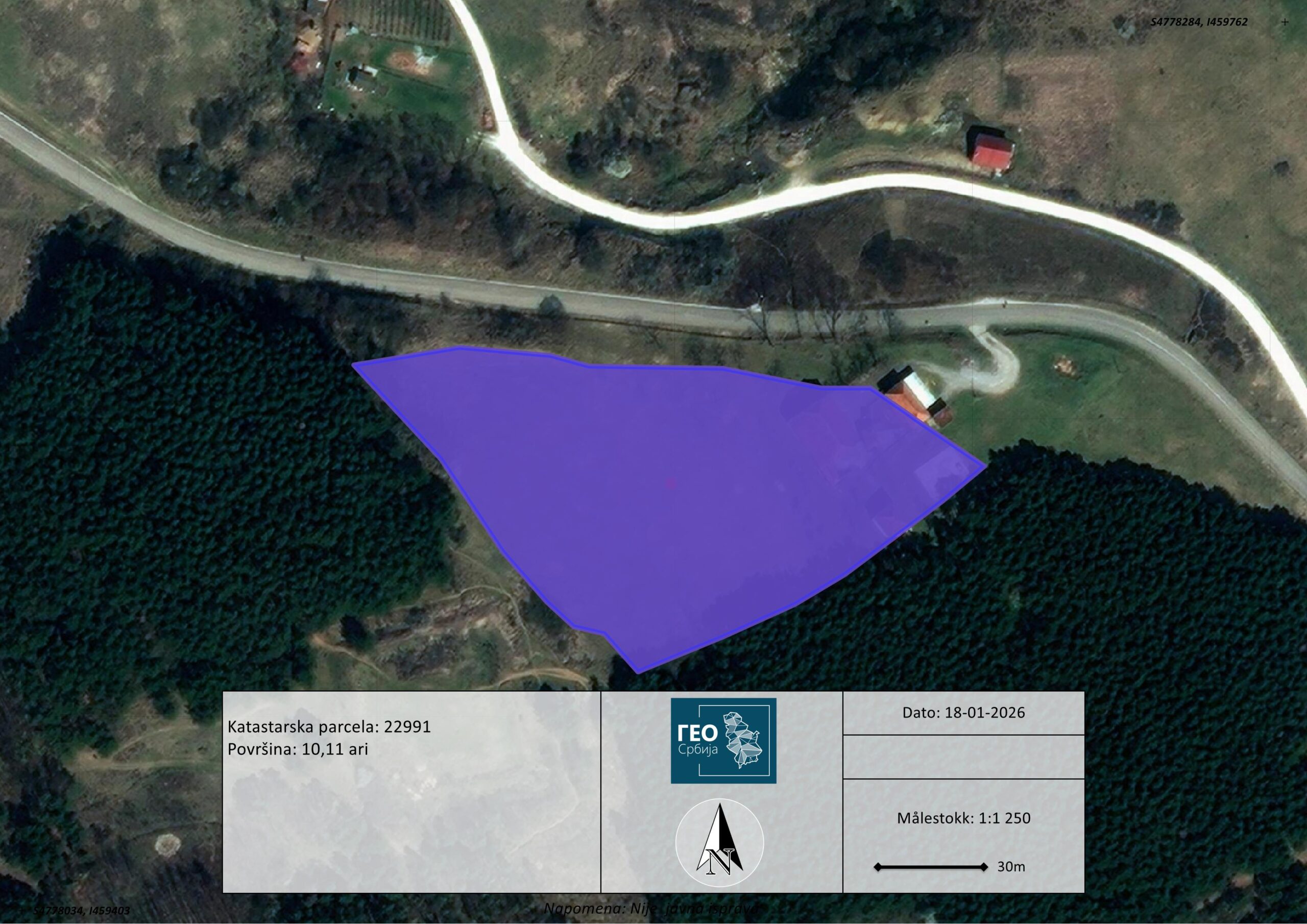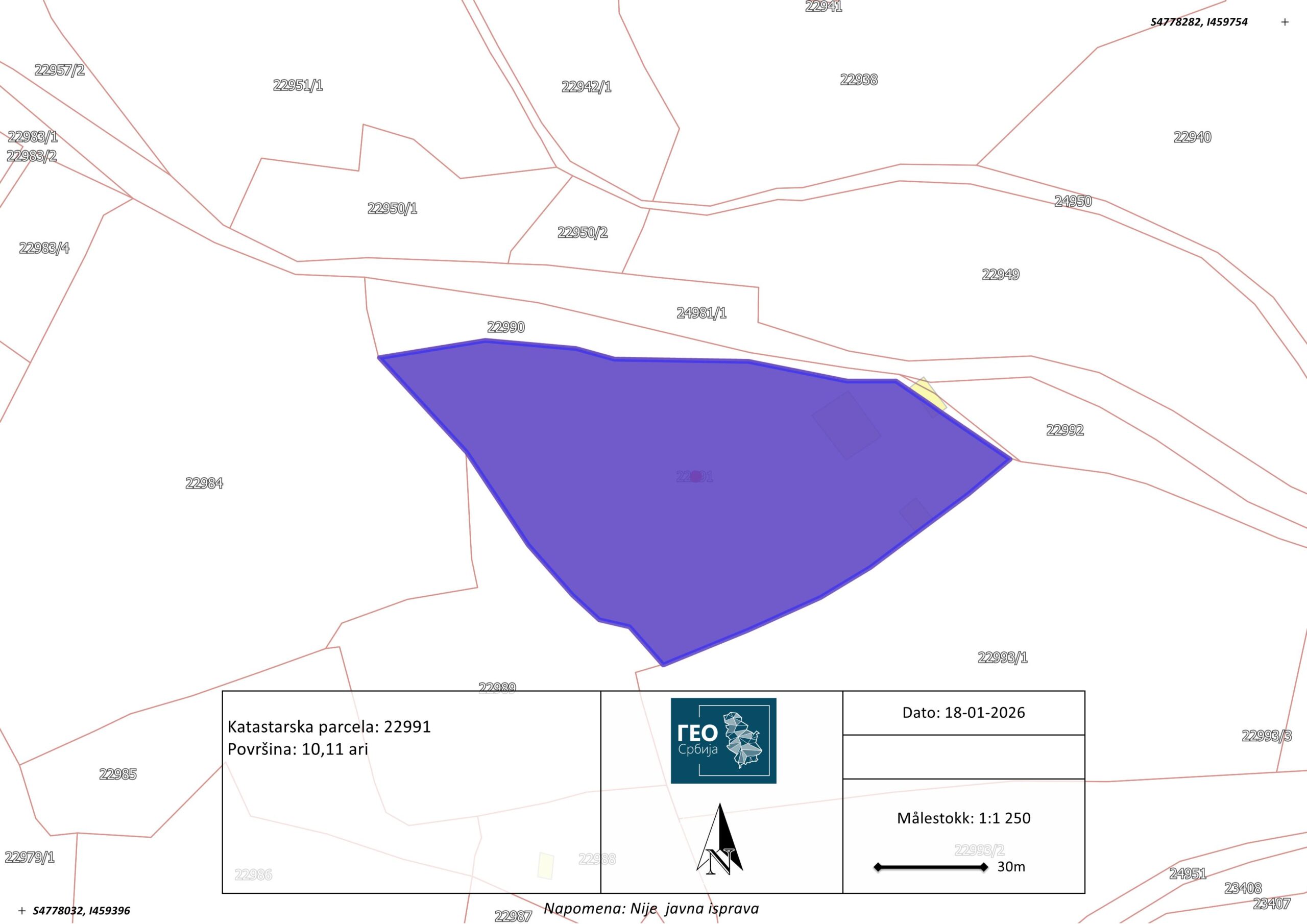Plac površine 10,11 ari, katastarska parcela KP 22991, nalazi se u području poznatom kao Đurđevi, na putu ka manastiru Đurđevi stupovi, jednoj od najpoznatijih istorijskih i duhovnih lokacija u okolini Novog Pazara. Do parcele se dolazi lokalnim putem koji se odvaja od glavne saobraćajnice, što obezbeđuje mir i privatnost.