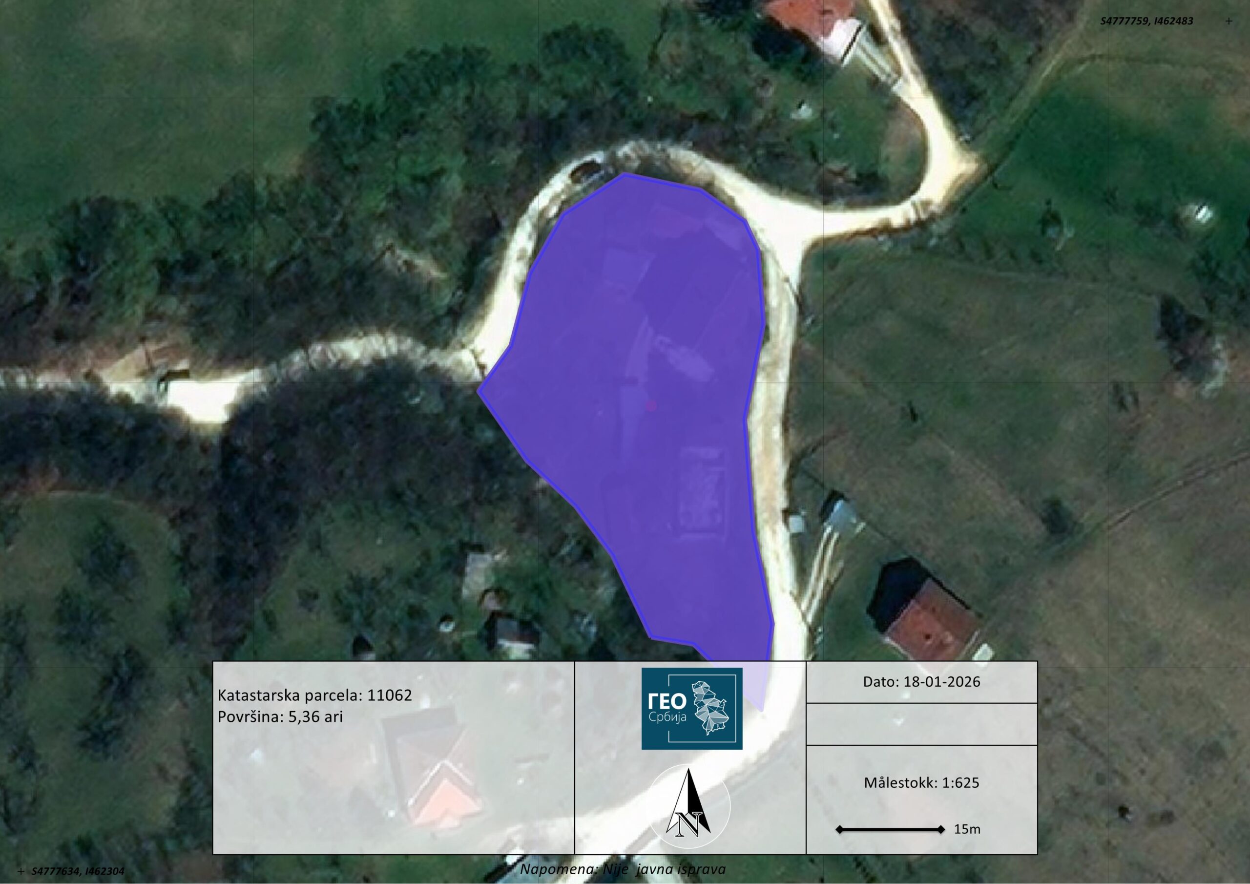 Plac površine 5,36 ari, katastarska parcela KP 11062, nalazi se u naselju Podbijelje, u Novom Pazaru, na uzvišenoj i mirnoj lokaciji iznad magistralnog puta. Do placa se dolazi skretanjem sa magistrale kod restorana DAR, nakon čega se pristupa lokalnim putem ka parceli.